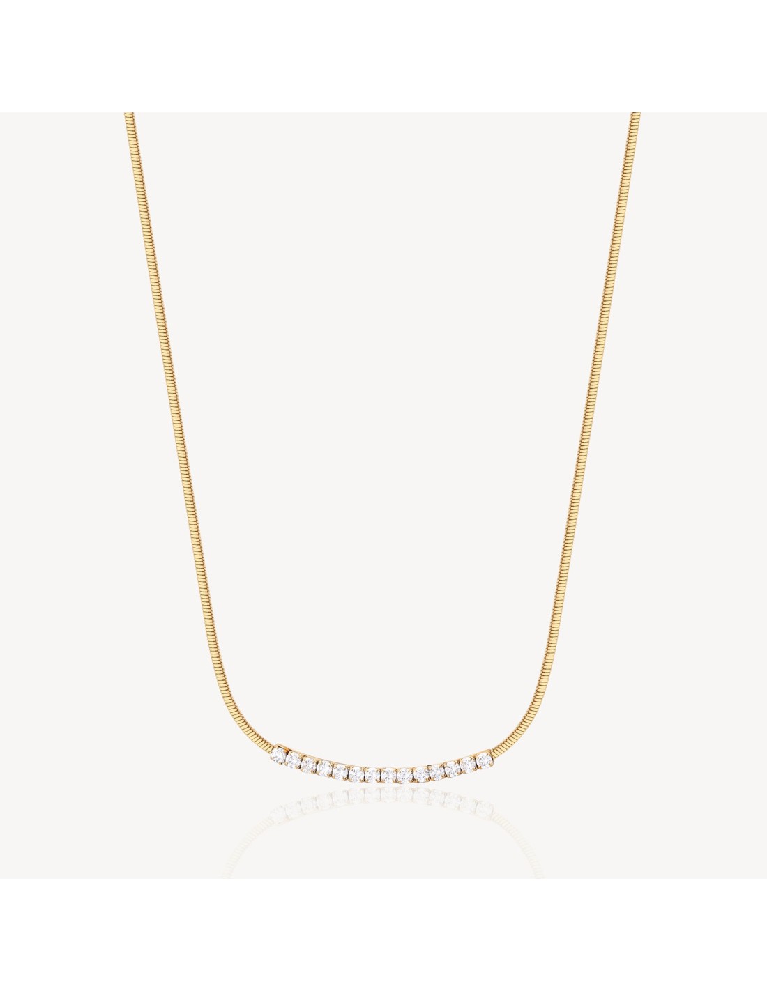 Collana girocollo in acciaio 304, finitura color oro e cubic zirconia bianchi.