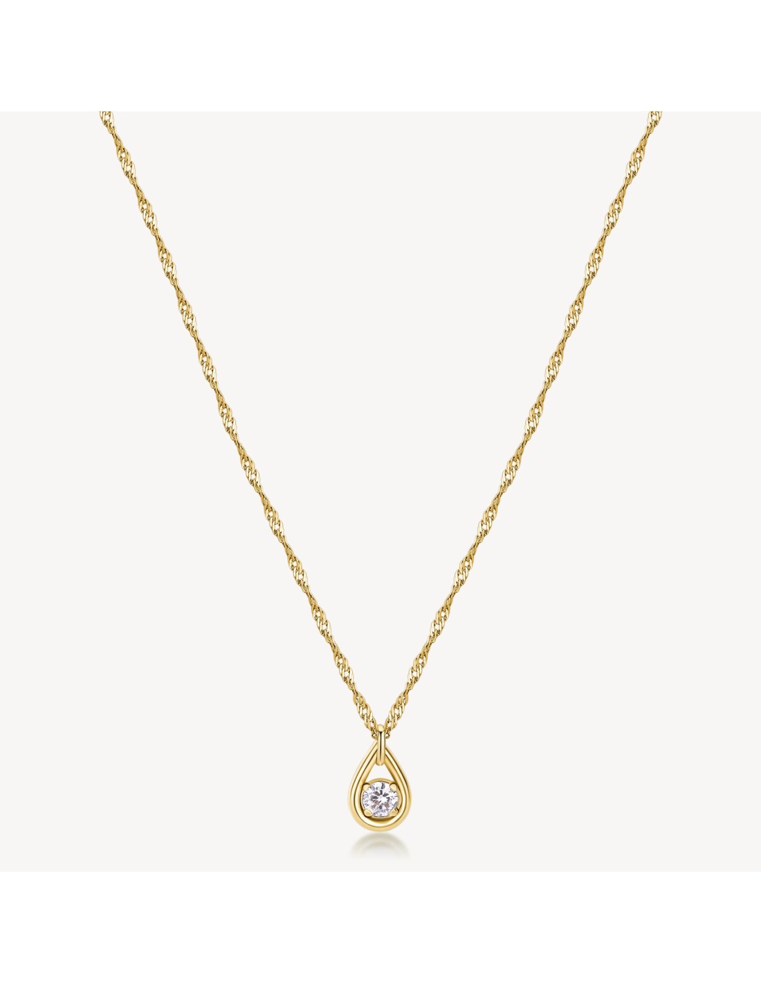 Collana girocollo in acciaio 316L, finitura pvd oro 14K e pendente con cubic zirconia.