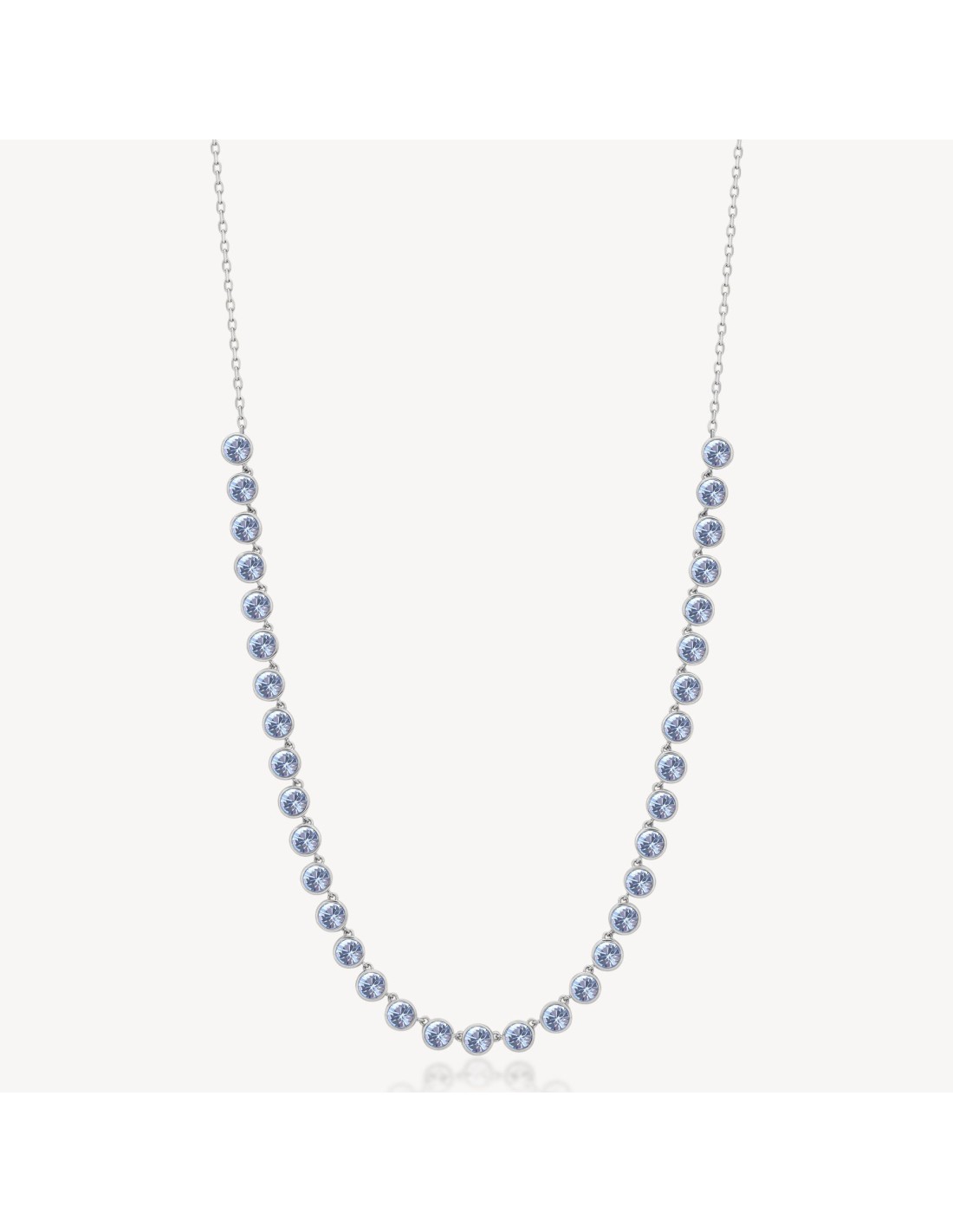 Collana girocollo in acciaio 316L e cristalli colore light sapphire.