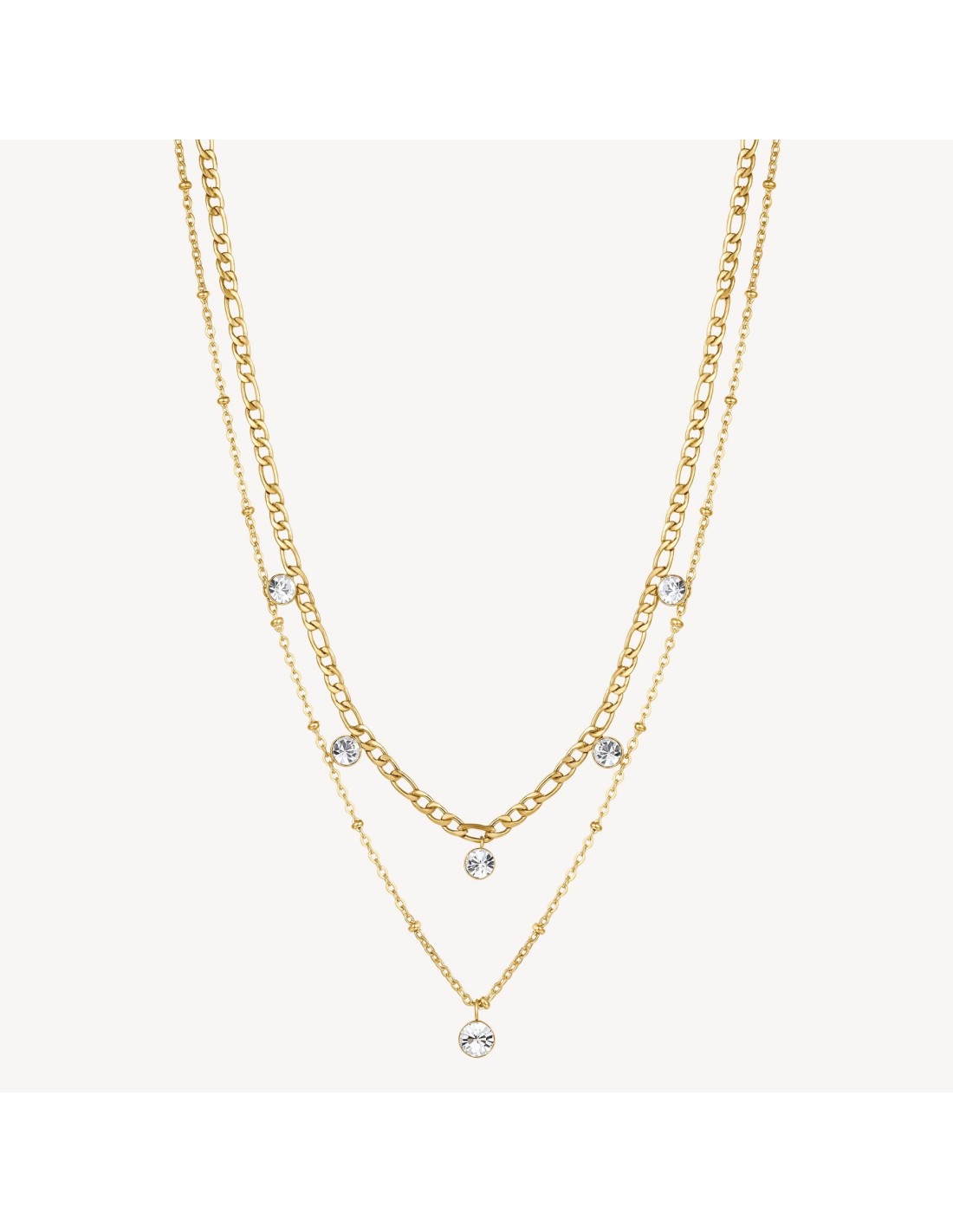 Collana a doppio filo in acciaio 316L e finitura pvd oro 14K con cristalli.