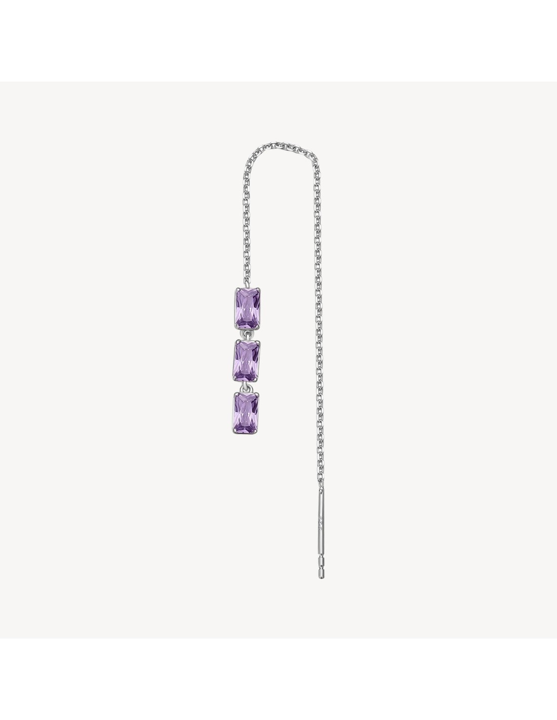 Orecchino singolo saliscendi in argento rodiato 925 con baguette cubic zirconia colore amethyst.