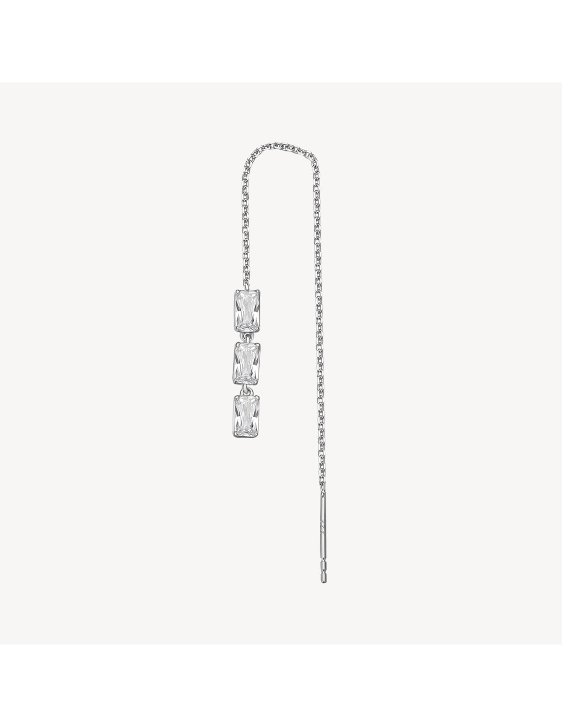 Orecchino singolo saliscendi in argento rodiato 925 con baguette cubic zirconia.