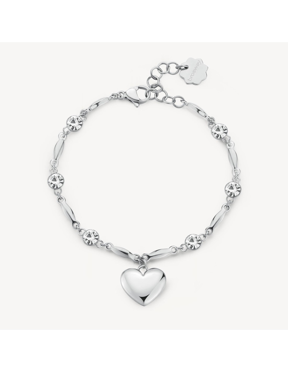 Bracciale semirigido in acciaio 316L, con pendente a forma di cuore e cristalli.