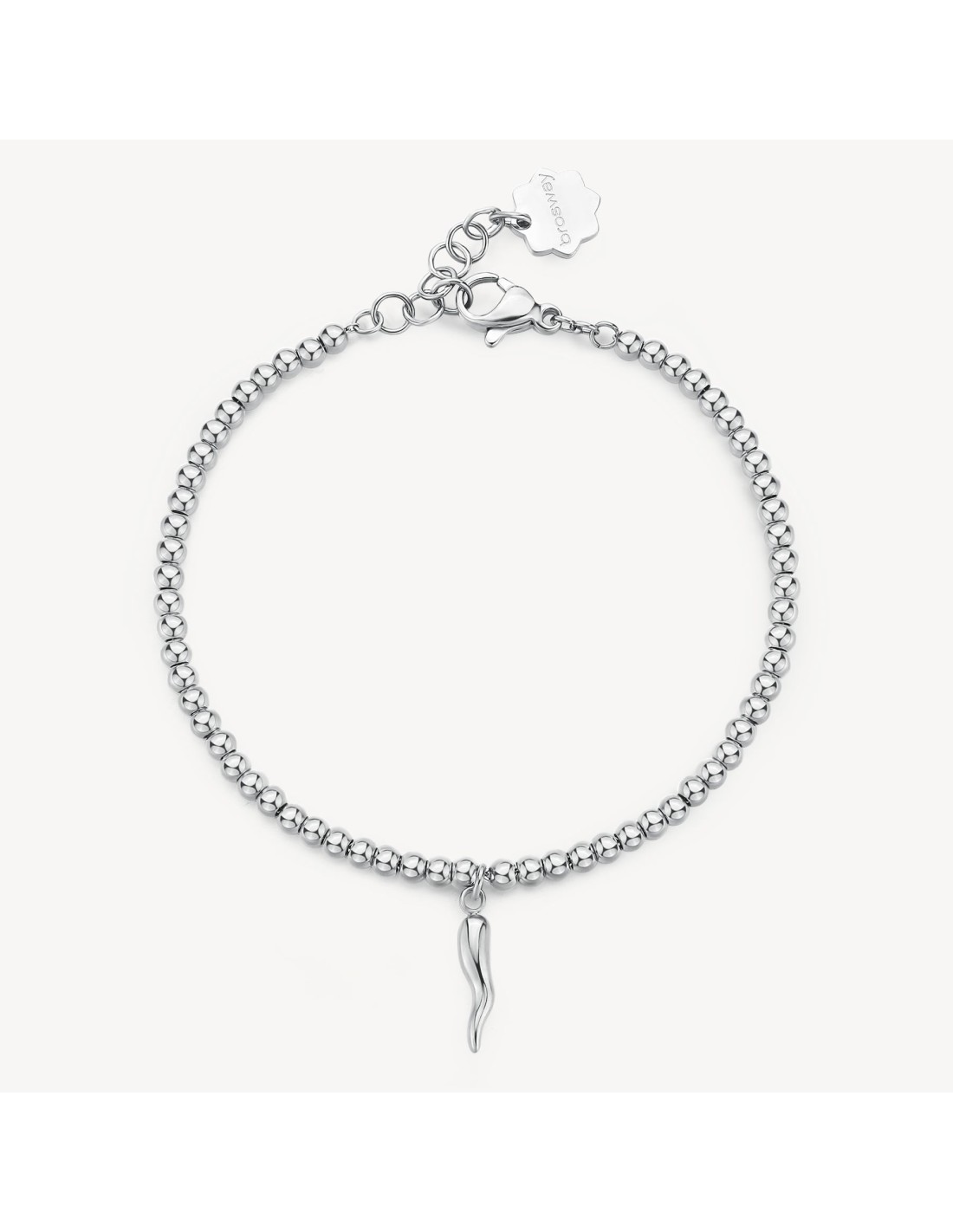 Bracciale con sfere in acciaio 316L e pendente a forma di cornetto.