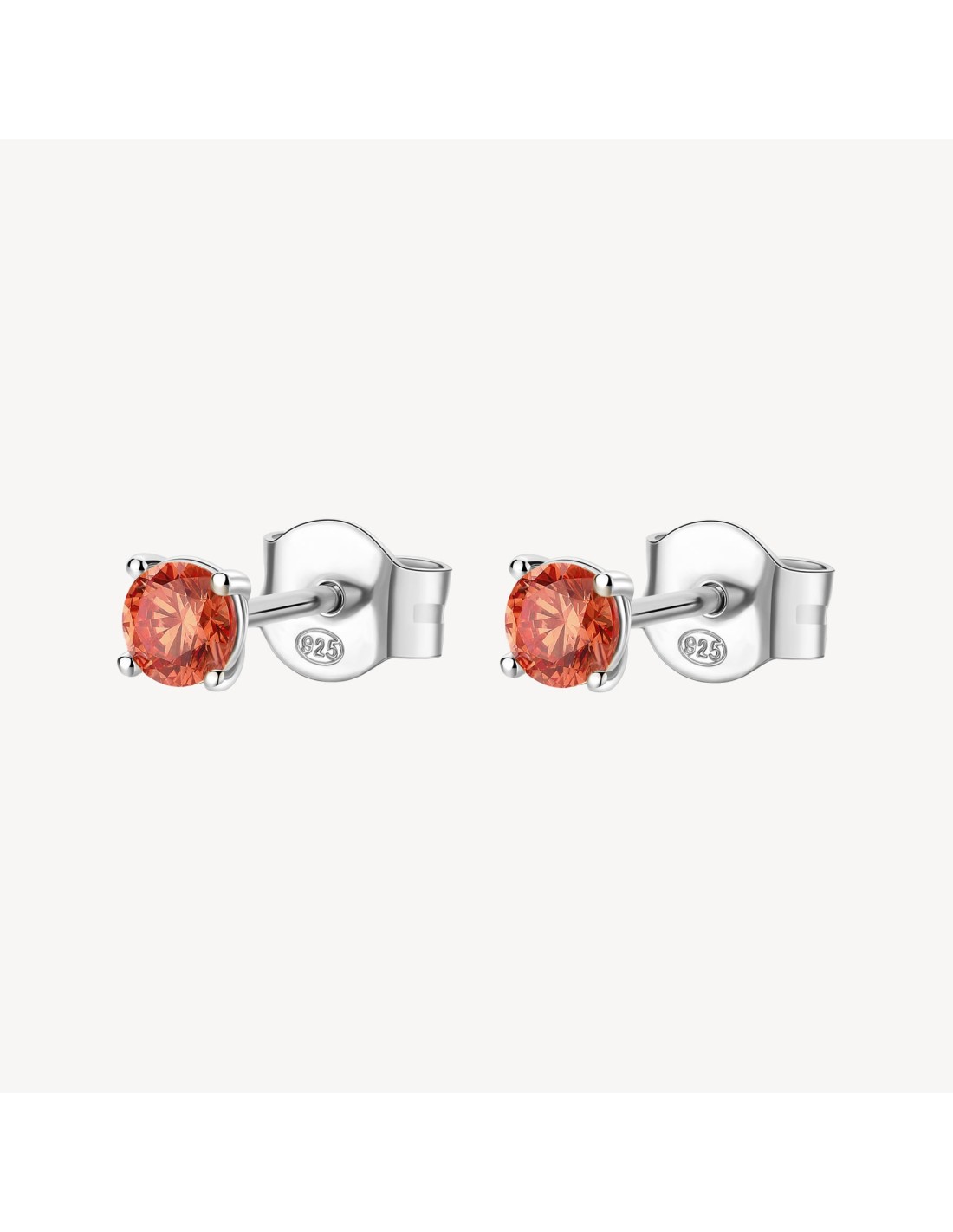 Orecchini a lobo in argento rodiato 925 con round cubic zirconia colore orange.