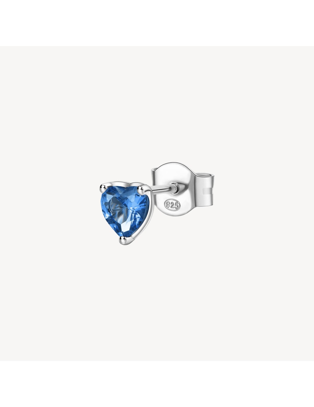 Orecchino singolo a lobo in argento rodiato 925 a forma di cuore con cubic zirconia colore sapphire.