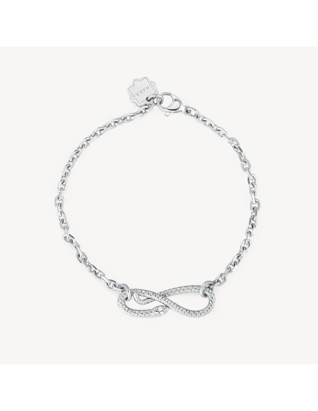 Bracciale in acciaio 316L, con centrale a forma di serpente e cristalli.