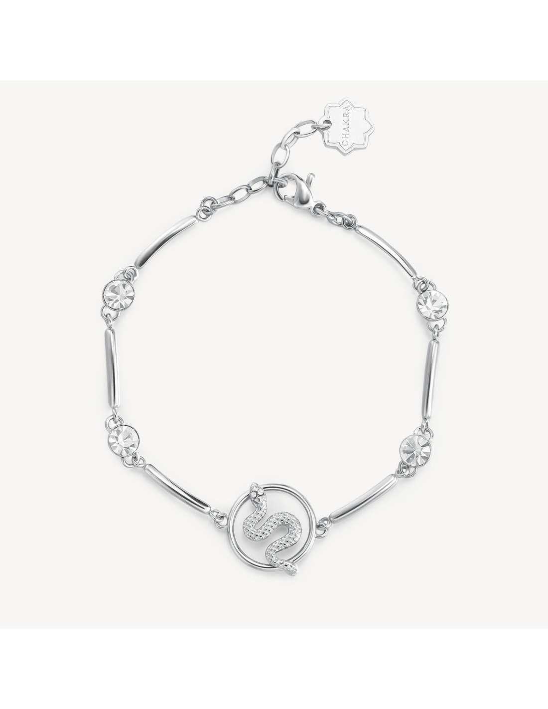 Bracciale semirigido in acciaio 316L, con centrale a forma di serpente e cristalli.