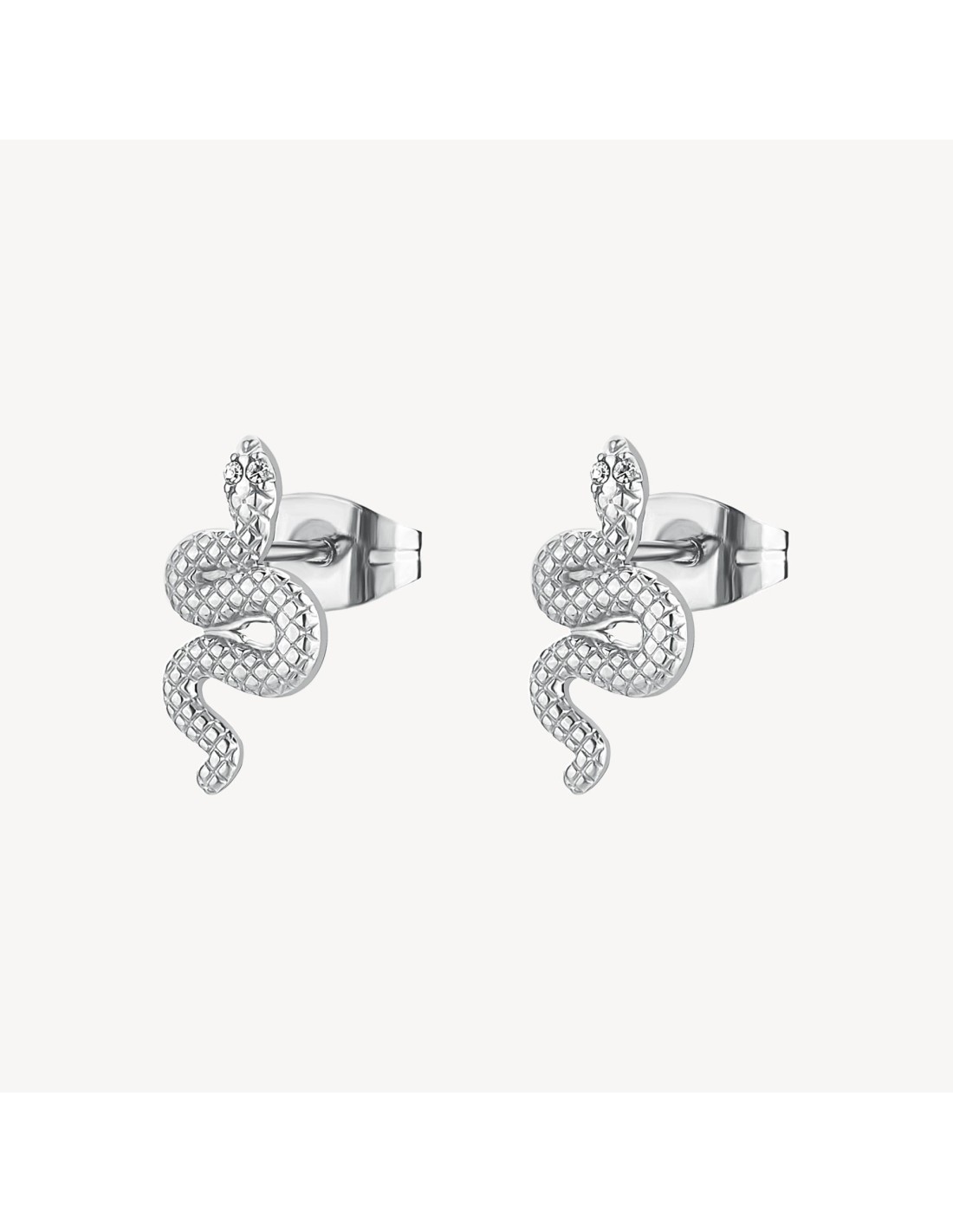 Orecchini in acciaio 316L a forma di serpente e cristalli.