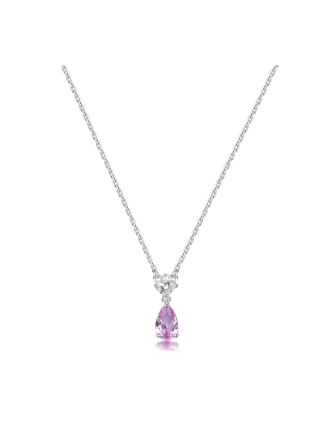 Collana girocollo in argento rodiato 925 e pendente con square cubic zirconia e pear cubic zirconia colore light ruby.