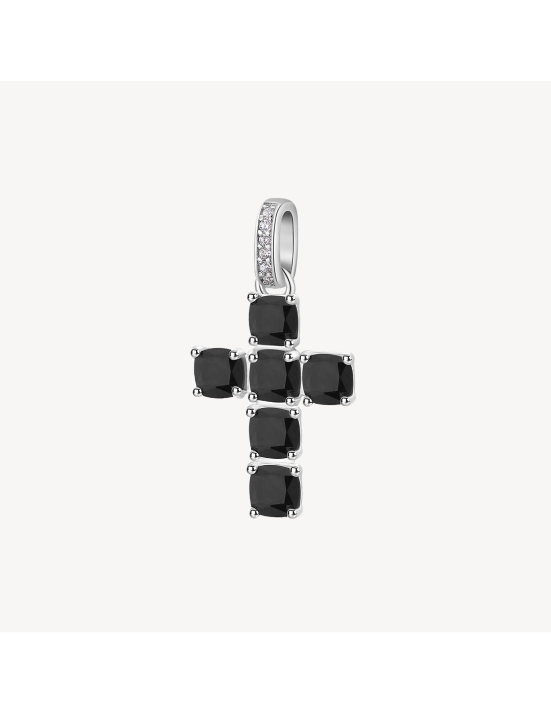 Ciondolo a forma di croce in argento rodiato 925 con zirconi neri cushion.