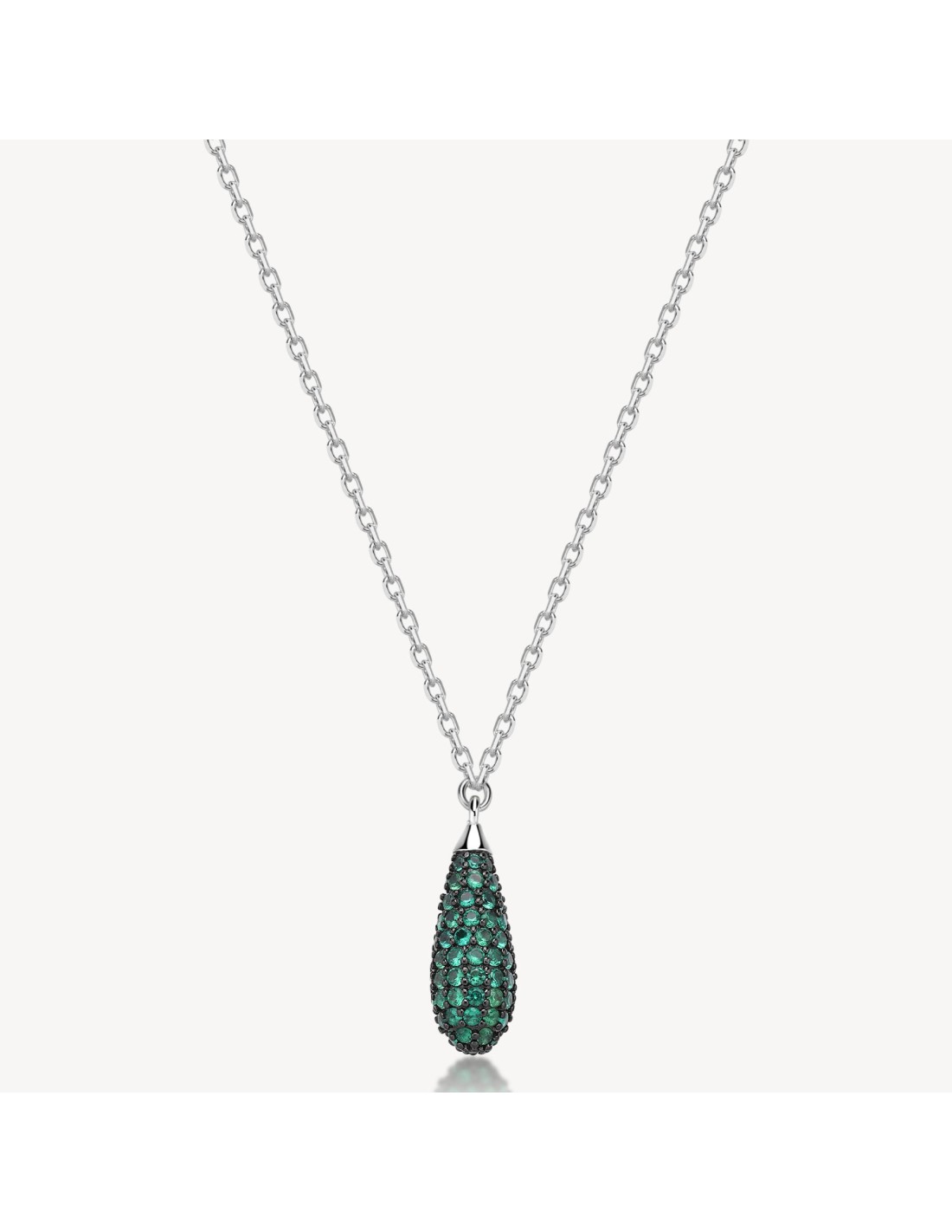 Collana girocollo in argento 925 rodiato con pendente galvanico color rutenio e pietre cubic zirconia color smeraldo.