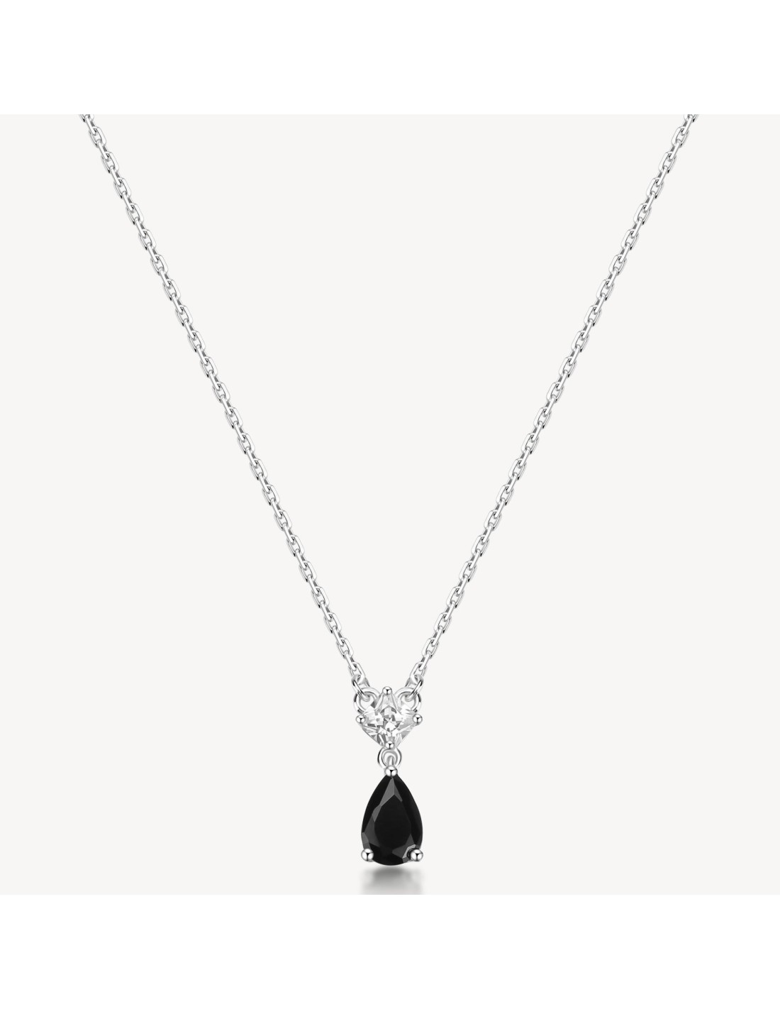 Collana girocollo in argento rodiato 925 e pendente con square cubic zirconia e pear cubic zirconia nero.