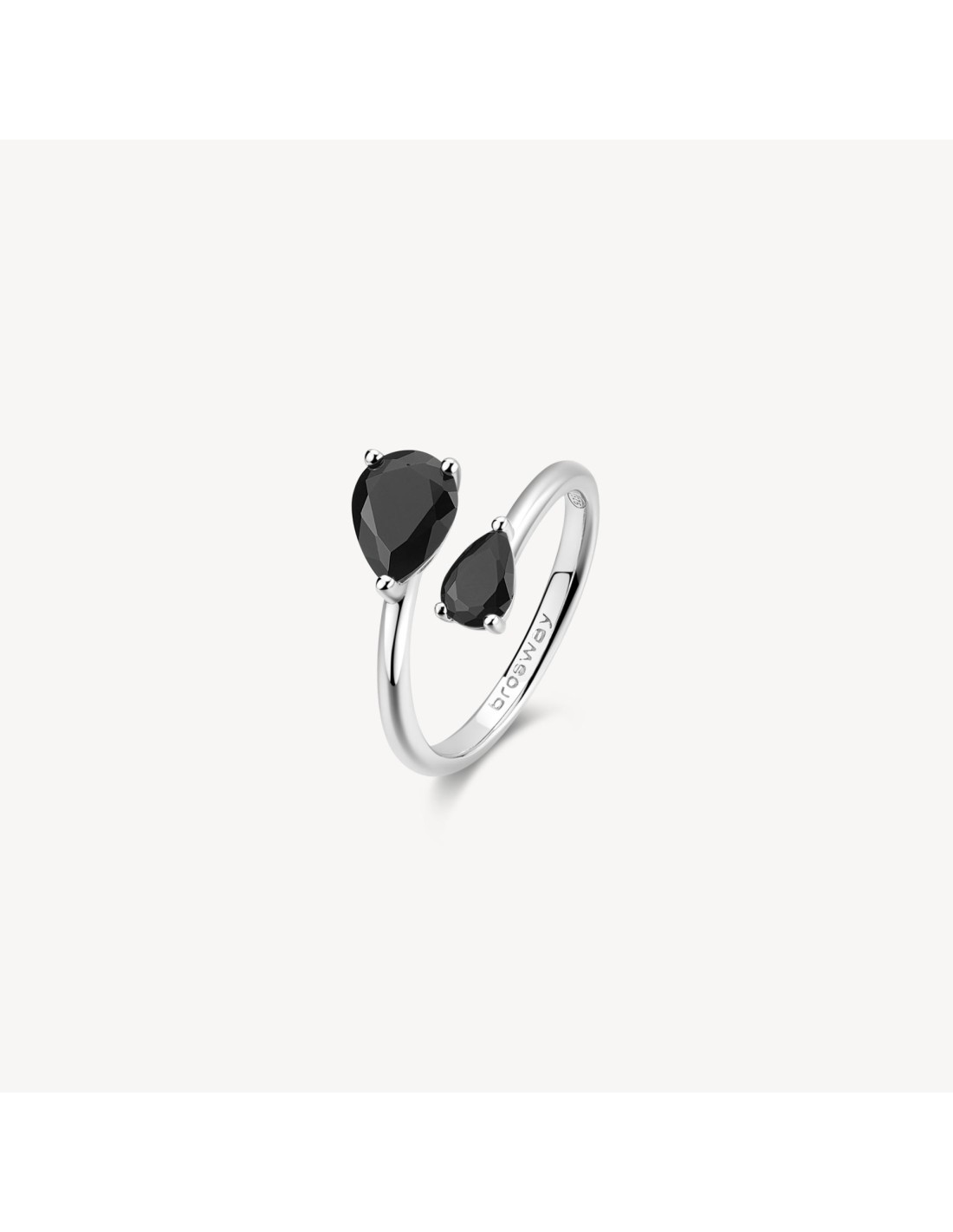 Anello in argento rodiato 925 con pear cubic zirconia neri.