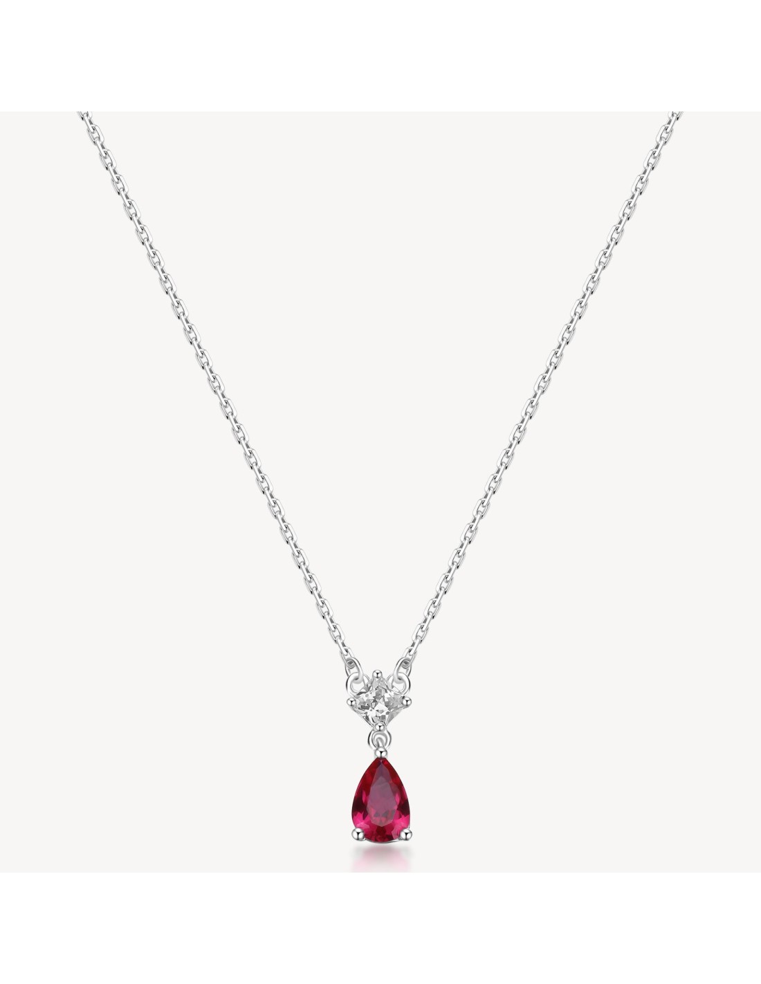 Collana girocollo in argento rodiato 925 e pendente con square cubic zirconia e pear cubic zirconia colore ruby.