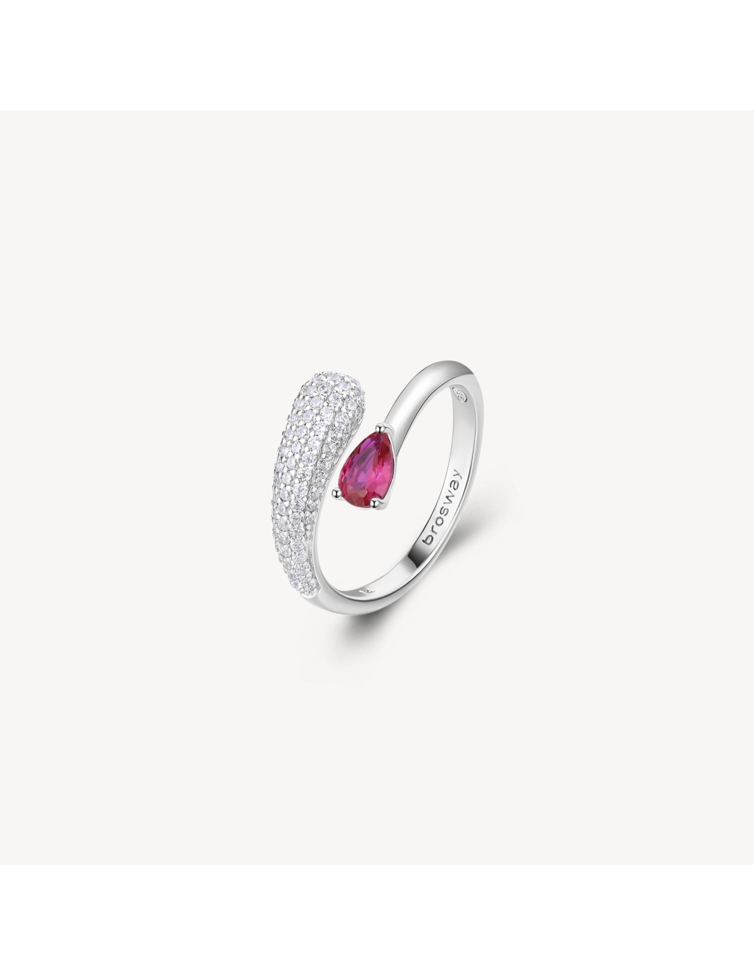 Anello contrarié in argento rodiato 925 con cubic zirconia chiari e colore ruby.