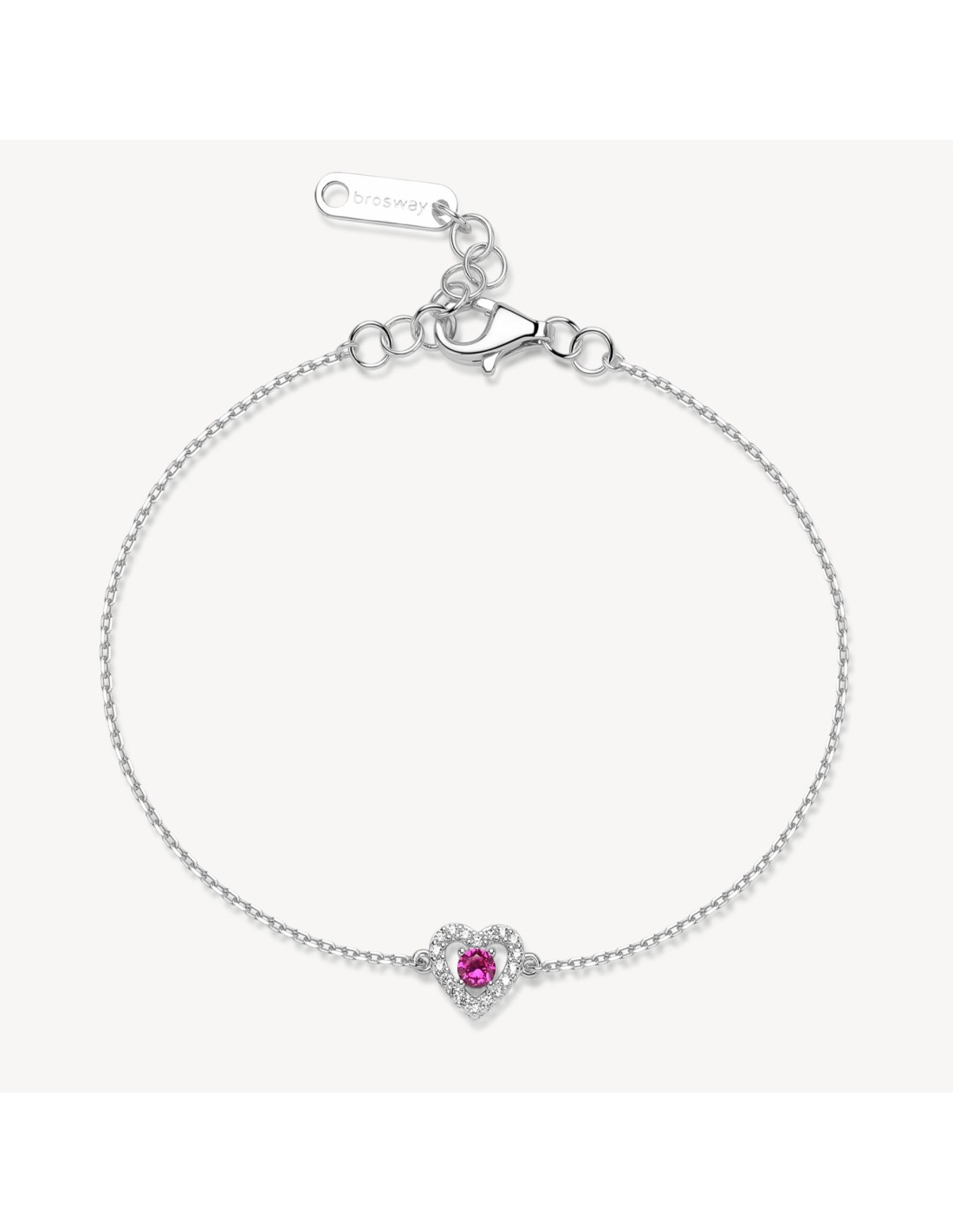 Bracciale in argento rodiato 925 con centrale a forma di cuore con cubic zirconia chiari e colore ruby.