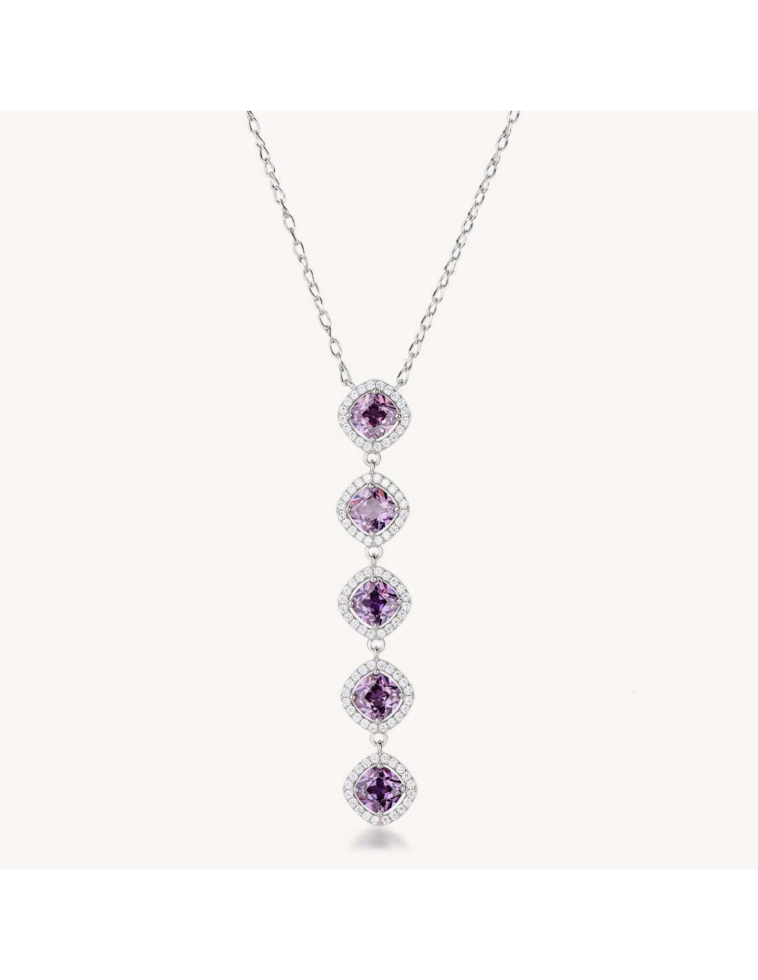 Collana girocollo in argento rodiato 925 e pendente con cubic zirconia chiari e cubic zirconia colore amethyst.
