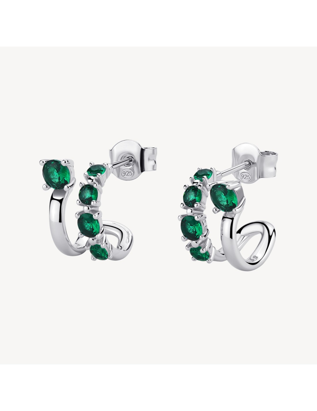 Orecchini a cerchio in argento rodiato 925 con cubic zirconia colore emerald.