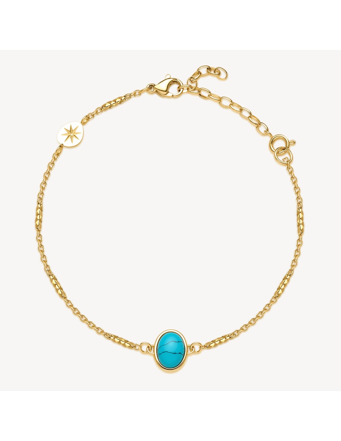 Bracciale in acciaio 316L, finitura pvd oro 14K e centrale con turchese ricostruito.