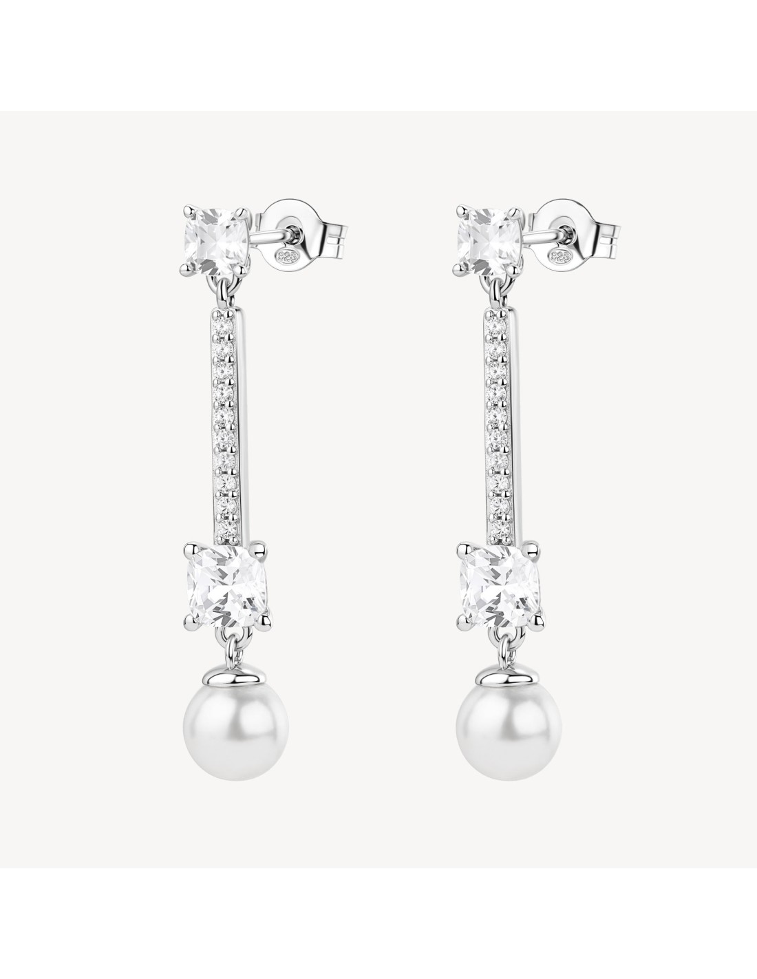 Orecchini pendenti in argento rodiato 925 con perle di conchiglia e cubic zirconia.