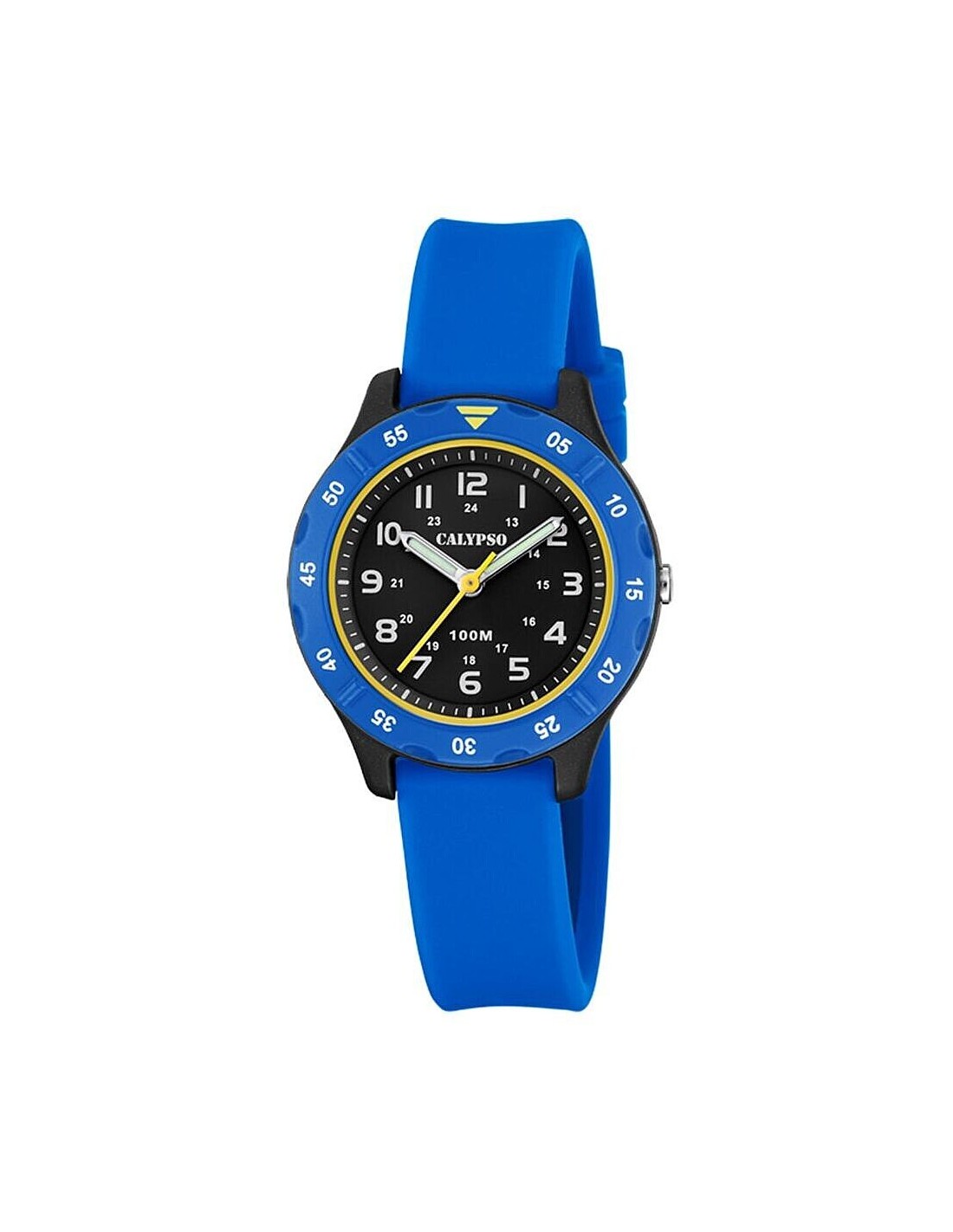 Orologio da Bambino della marca Calypso, movimento al quarzo solo tempo. Cassa in resina nera con lavorazione satinata misura 32 mm. Il quadrante è nero,Il cinturino è in gomma blu. Il vetro è minerale. La resistenza all'acqua è 10 ATM.