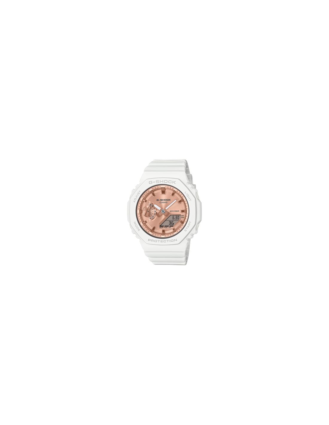 Aggiungi un tocco di originalità sul polso indossando il G-SHOCK con dettagli in oro rosa. Questi orologi GMA-S2100 sono caratterizzati da un quadrante rifinito con dettagli in oro rosa per un look essenziale, minimalista e scintillante.