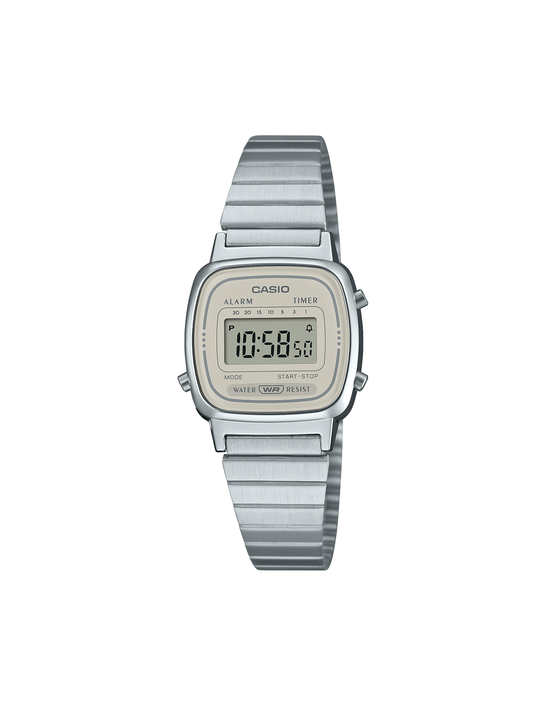 I delicati colori del quadrante in una serie di rilassanti sfumature di grigio aggiungono un tocco urban retrò alla combinazione dal design classico di cassa quadrata e cinturino metallico. Un orologio digitale per gli amanti della moda che amano esprimere il proprio stile pur rimanendo sempre al passo con le ultime tendenze.