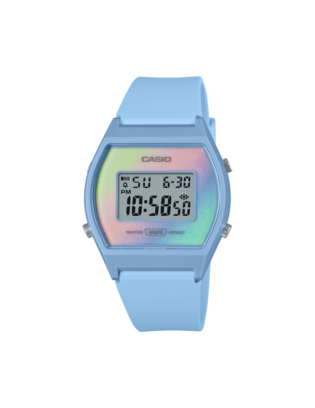 L'impermeabilità fino a 5 bar consente di indossarlo pur stando in acqua e l'illuminazione a LED di questo orologio assicura un'eccezionale visibilità dell'ora anche al buio.