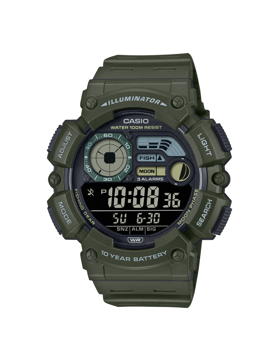 Eleganza e praticità al proprio polso con un orologio digitale multifunzione, in un design creato per facilitare la lettura. Con 10 anni di durata della batteria, impermeabilità fino a 10 bar, luce LED e display con l'ora del secondo fuso orario, questi orologi sono sempre pronti all'uso. Gli indicatori della fase