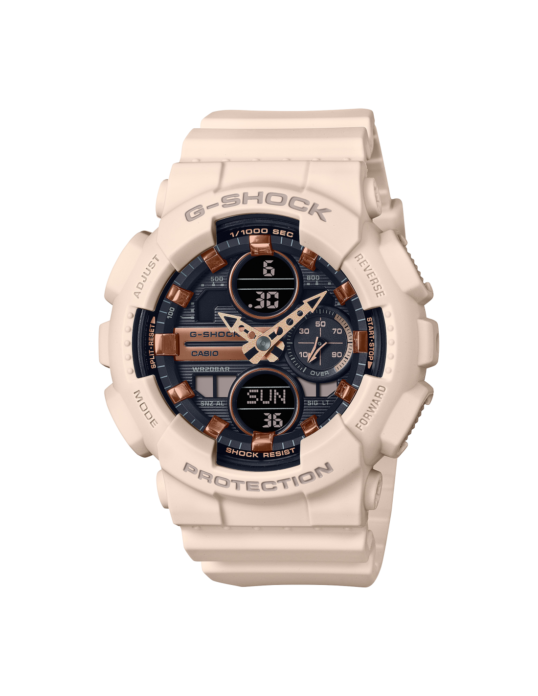 Da G-SHOCK, i resistenti orologi in continua evoluzione nella ricerca infinita di forza, un modello di dimensioni ridotte del popolare modello GA-140. Un formato compatto che si adatta perfettamente al polso mantenendo il design meccanico retro del quadrante. Per gli indici e il quadrante vengono utilizzate parti in metallo per migliorare la texture. Un G-SHOCK alla moda perfetto per l'inverno.