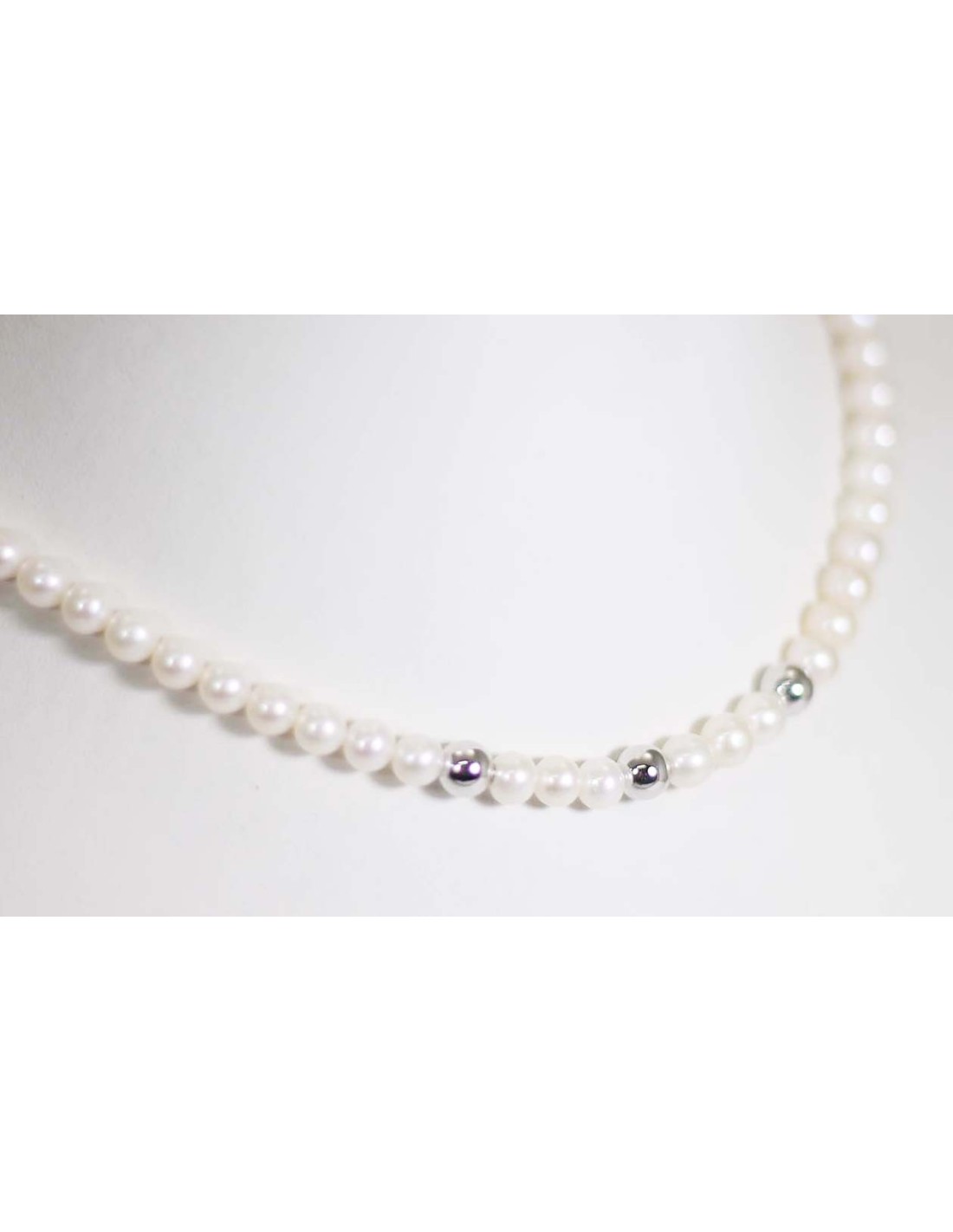 Collana in oro bianco con perle e sfere in oro bianco B-198BL