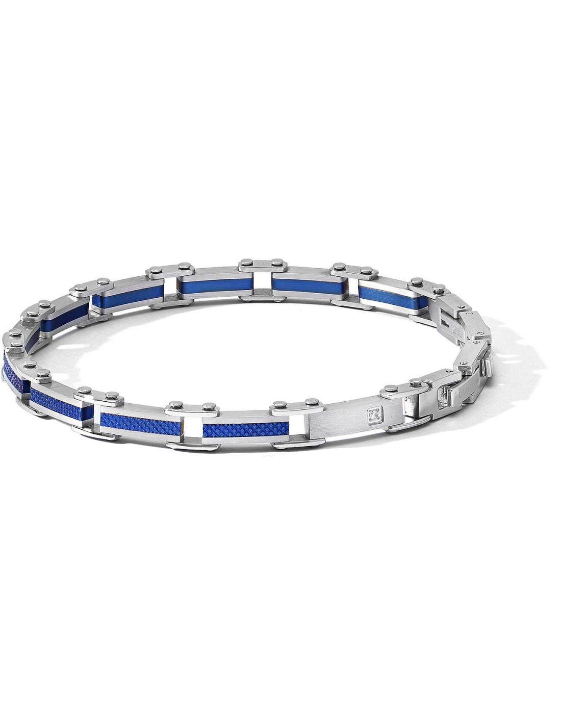 Bracciale da uomo in acciaio con pvd blu e zircone bianco di Comete della collezione Texture.