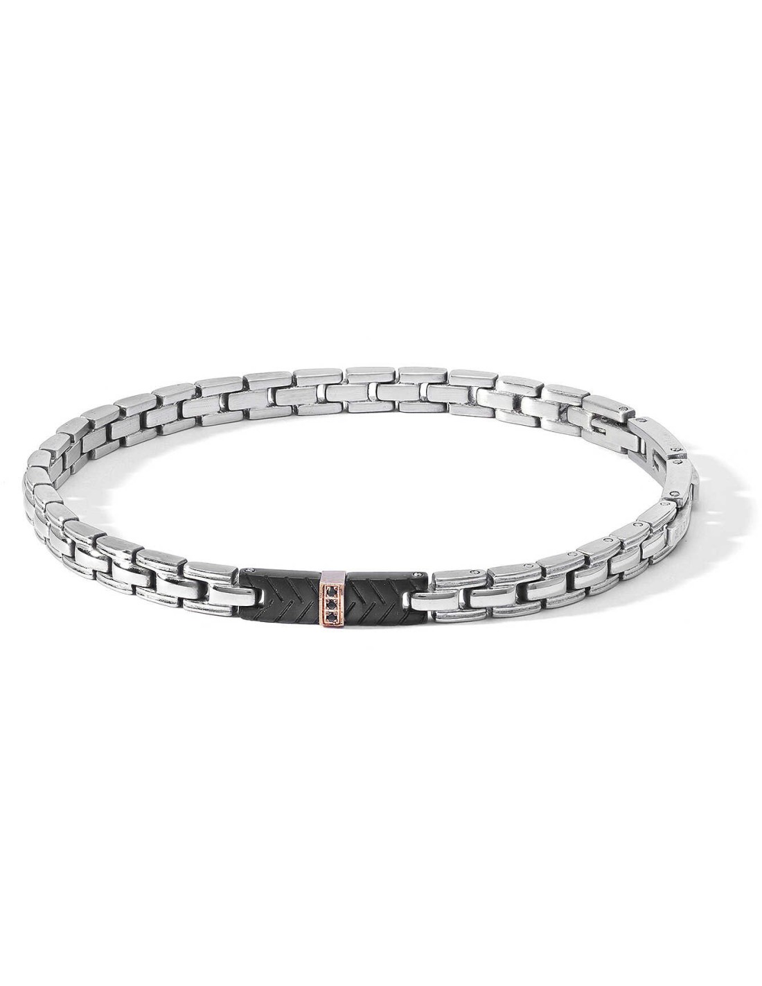 Bracciale da uomo in acciaio con pvd nero sabbiato e pvd rosè, zirconi neri di Comete della collezione Faces.