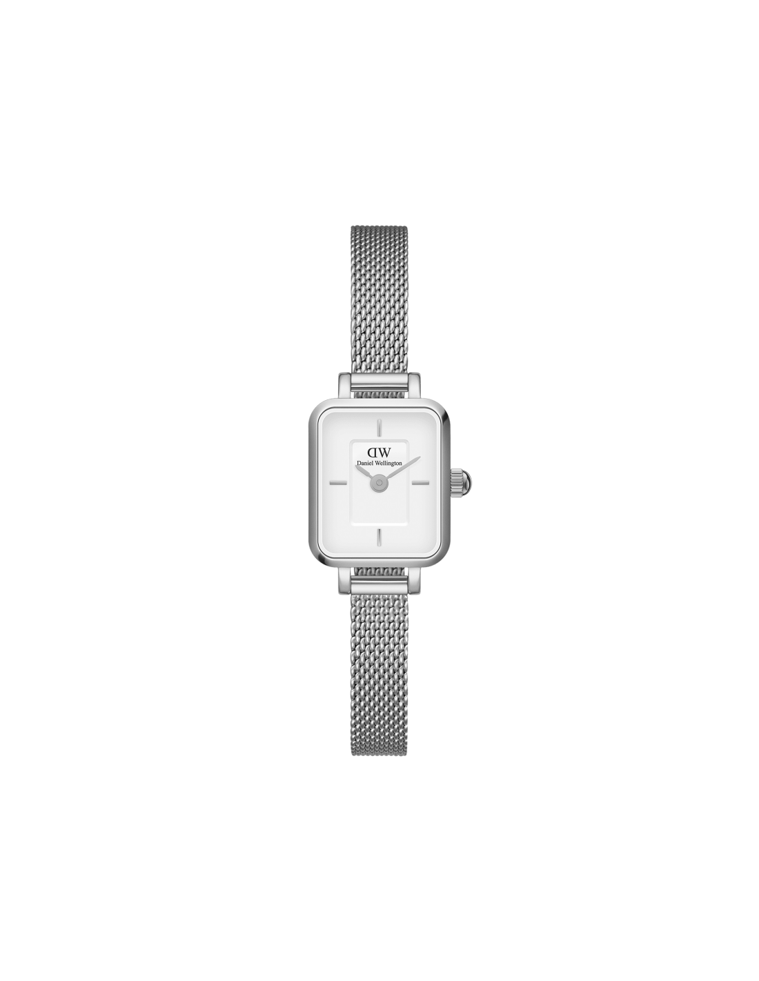 I raffinati angoli di Quadro sono stati ulteriormente ridotti per trasformarlo nel nostro orologio più piccolo di sempre. Questa versione di Quadro Mini vanta la nostra colorazione più tradizionale, impreziosita da un cinturino in maglia color argento.