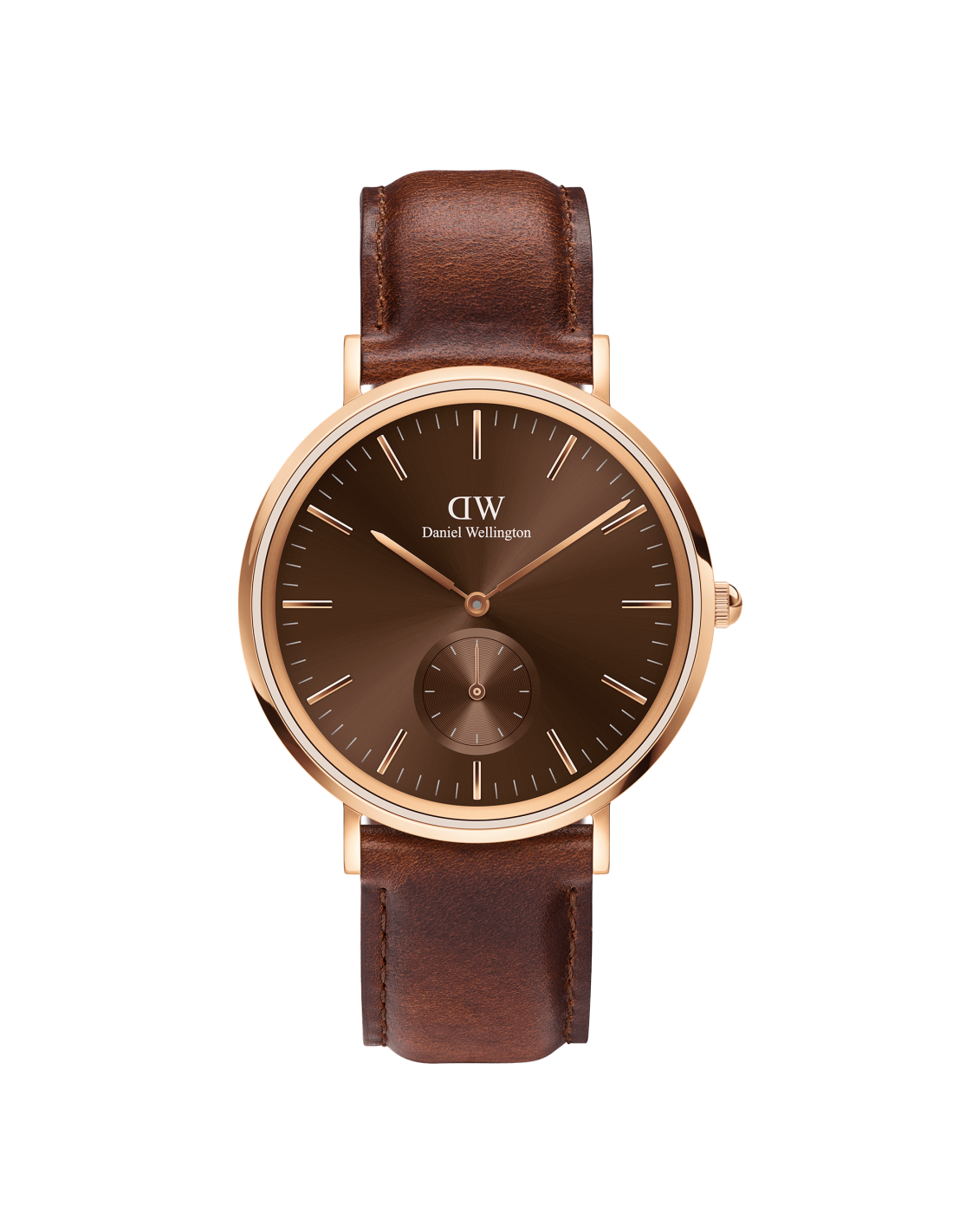 Il restyling del nostro orologio Classic lo rende ancora più affascinante grazie al multi-quadrante color ambra, ideato per indicare anche i secondi. Vanta un cinturino intercambiabile in pelle marrone e dettagli in oro rosa.