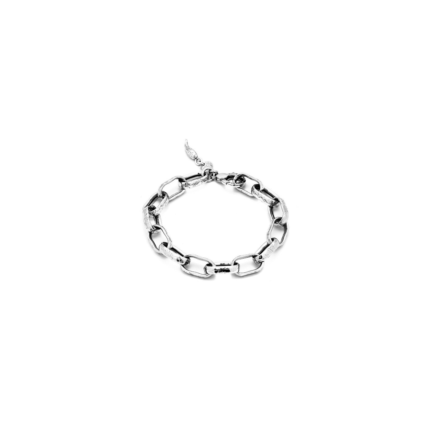 Il bracciale Soho racconta tutta la raffinata semplicità del gioiello più antico, grazie all'utilizzo di maglie lucenti e di grande impatto materico. Una catena luminosa e dai volumi eleganti come solo l'argento martellato manualmente consente.
