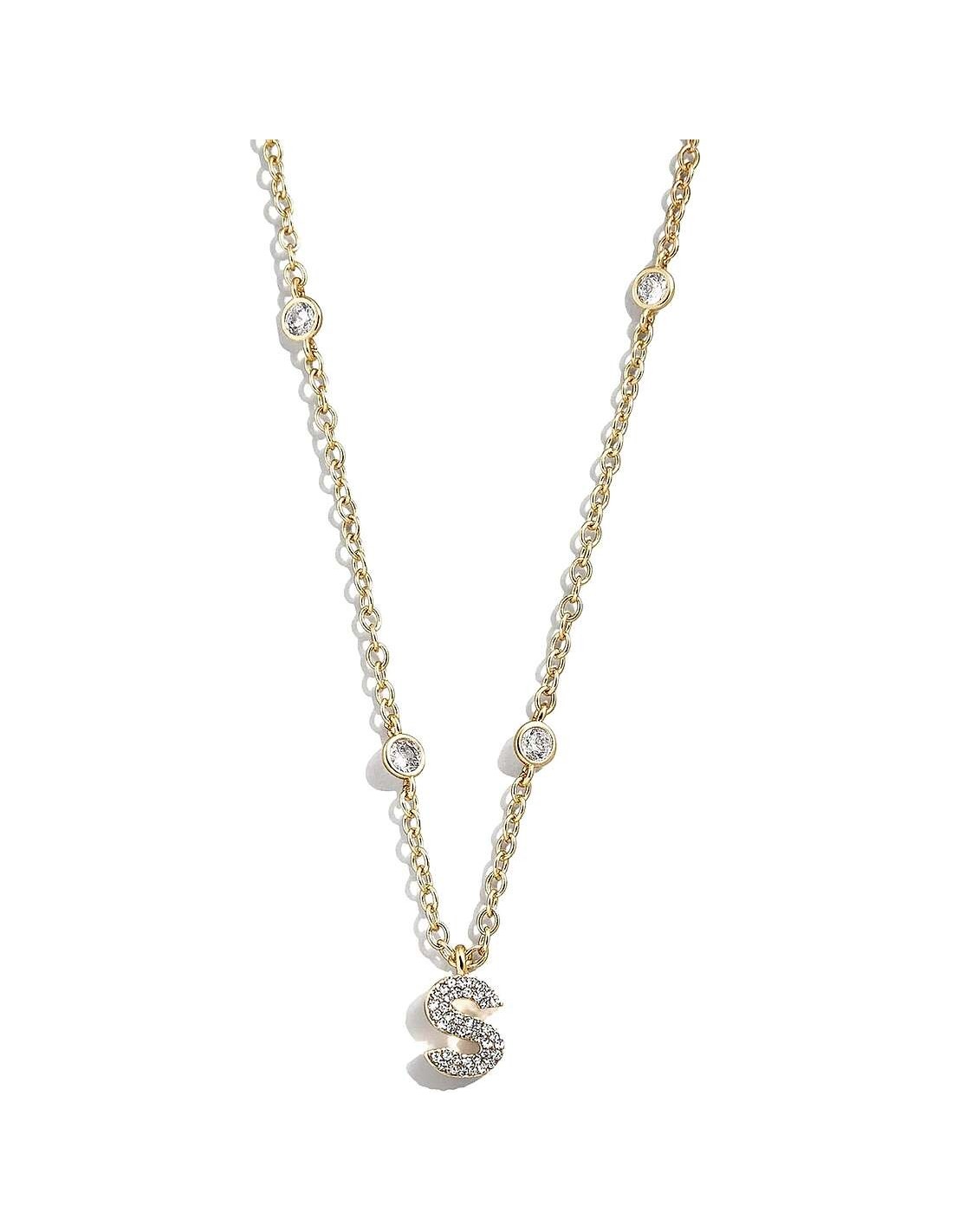 Collana da Donna della marca Liu Jo, il gioiello è realizzato in acciaio color Oro, raffigura un girocollo con una catena rollò, al centro c'è un iniziale S con zirconi.