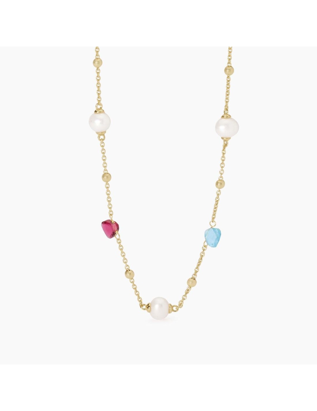 Girocollo regolabile da donna in argento placcato oro giallo 18K con catena forzatina, pendenti in glass taglio goccia e perle coltivate.
