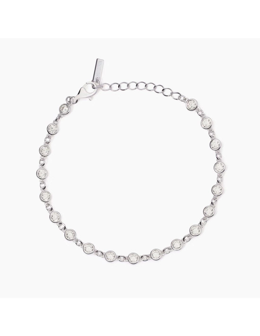 Bracciale regolabile da donna in argento rodiato con zirconi.