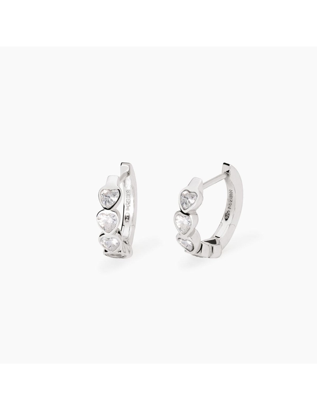 Orecchini da donna a cerchio in argento rodiato con zirconi taglio cuore.