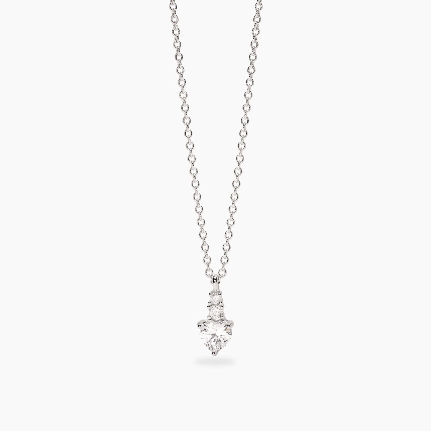 Girocollo regolabile con catena rolò in argento rodiato e pendente con cuore in zirconi.