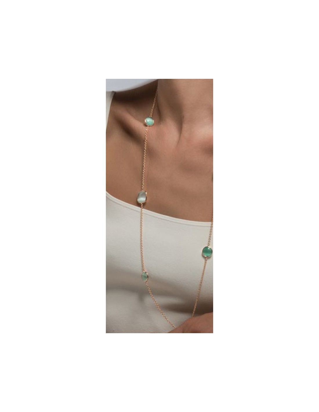 Collana lunga MADI Laguna in argento 925 placcato oro rosa con quarzo idrotermale avorio e verde F_3926700
