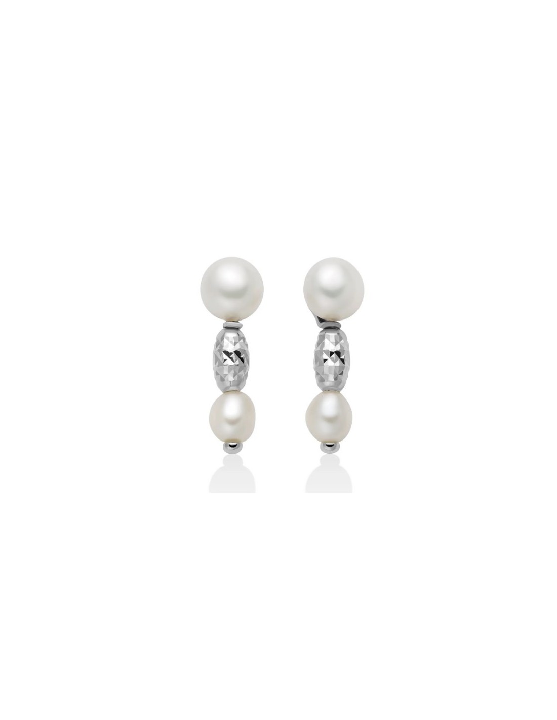 Orecchini a lobo di 1 cm in argento e perle. Un gioiello che unisce la tradizione delle perle a forme più moderne.