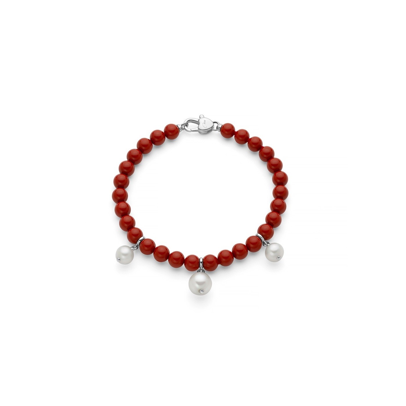 Bracciale donna miluna, PBR3735, collezione terra e mare, in argento 925 con perle e corallo rosso. lunghezza 19cm Nr 3 Perle vere LR Col.