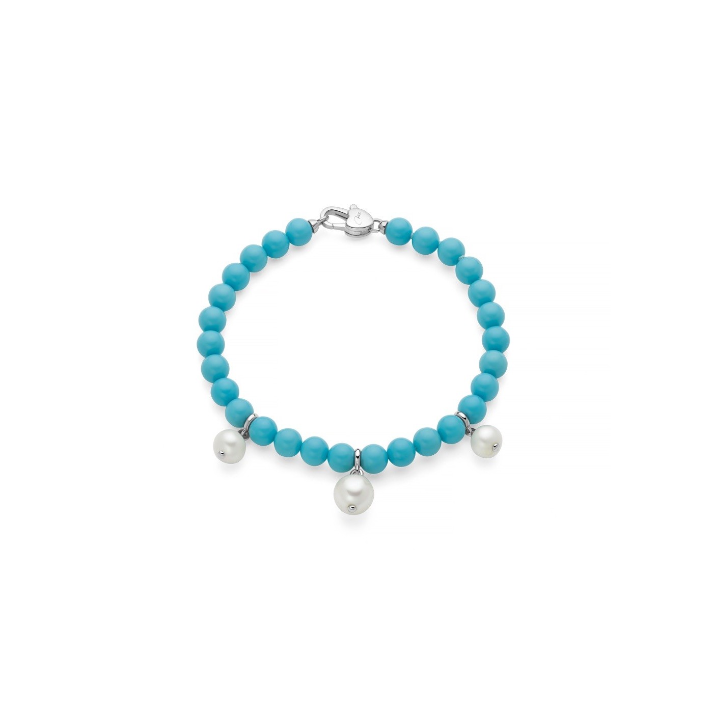 Bracciale donna miluna, PBR3735, collezione terra e mare, in argento 925 con perle e turchese. lunghezza 19cm Nr 3 Perle vere LR Col.