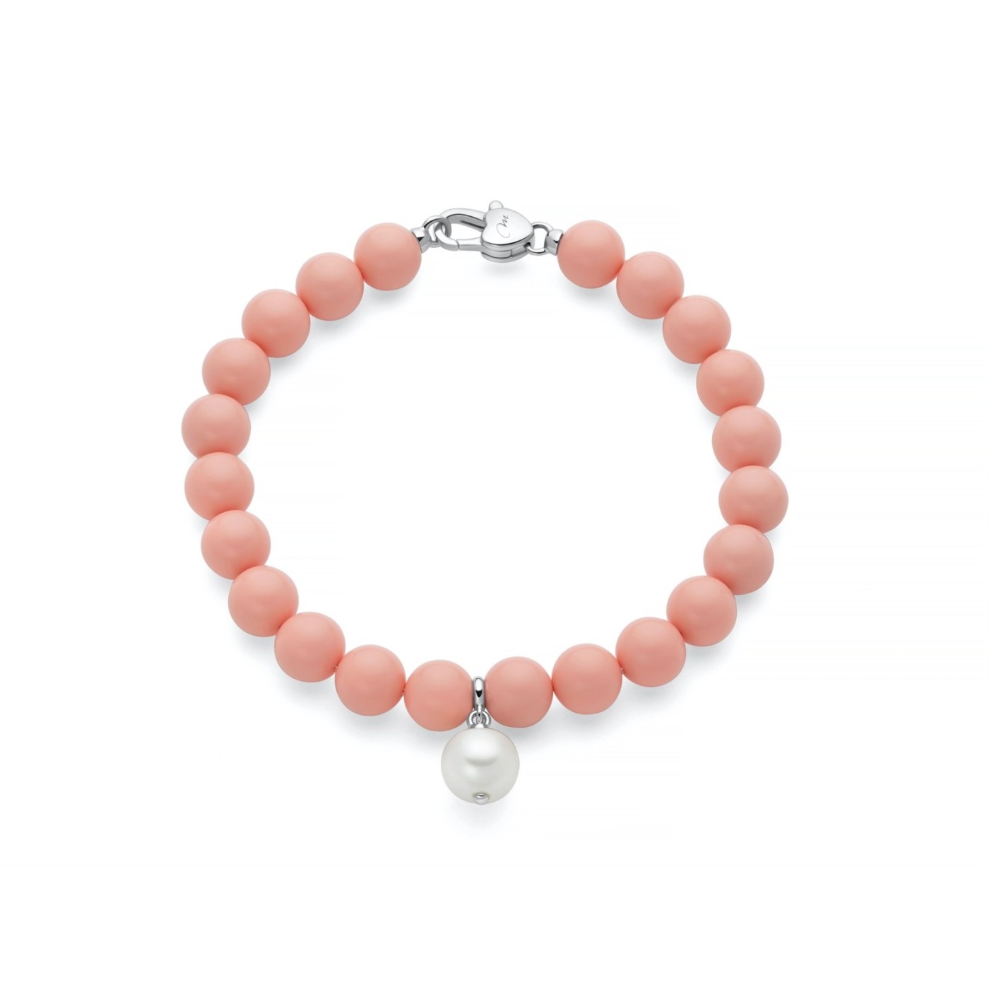 Bracciale donna miluna, PBR3736, collezione terra e mare, in argento 925 con perle e corallo rosa. lunghezza 19cm Nr 1 Perle vere LR Col.