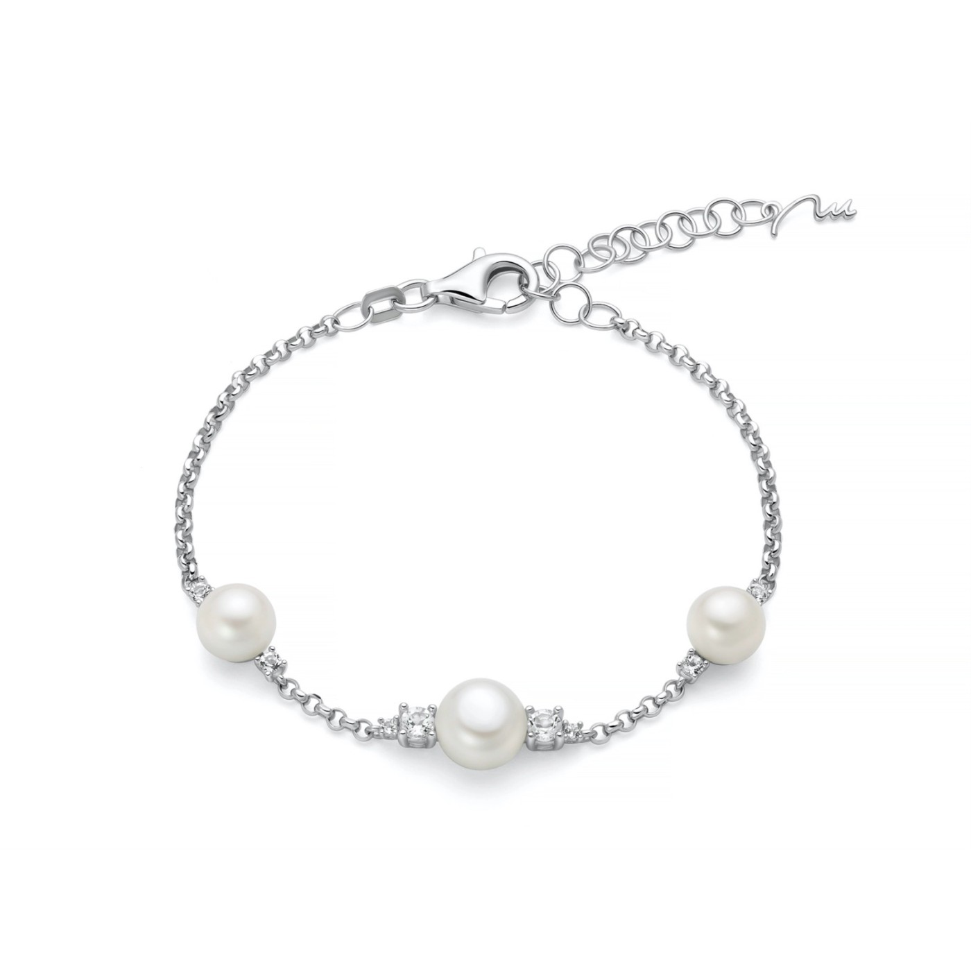 Bracciale donna miluna, PBR3752, collezione perle 925, in argento 925 perle e topazi. lunghezza 15, 5cm+4cm Argento 925/1000 Nr 2 Perle vere Bottone Col.