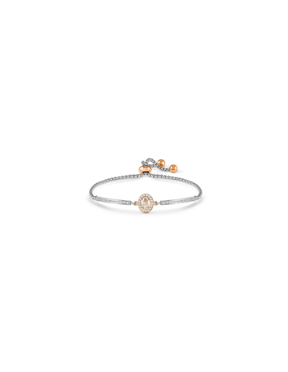 Bracciale in acciaio con pavé di cristalli bianchi e dettagli in PVD
