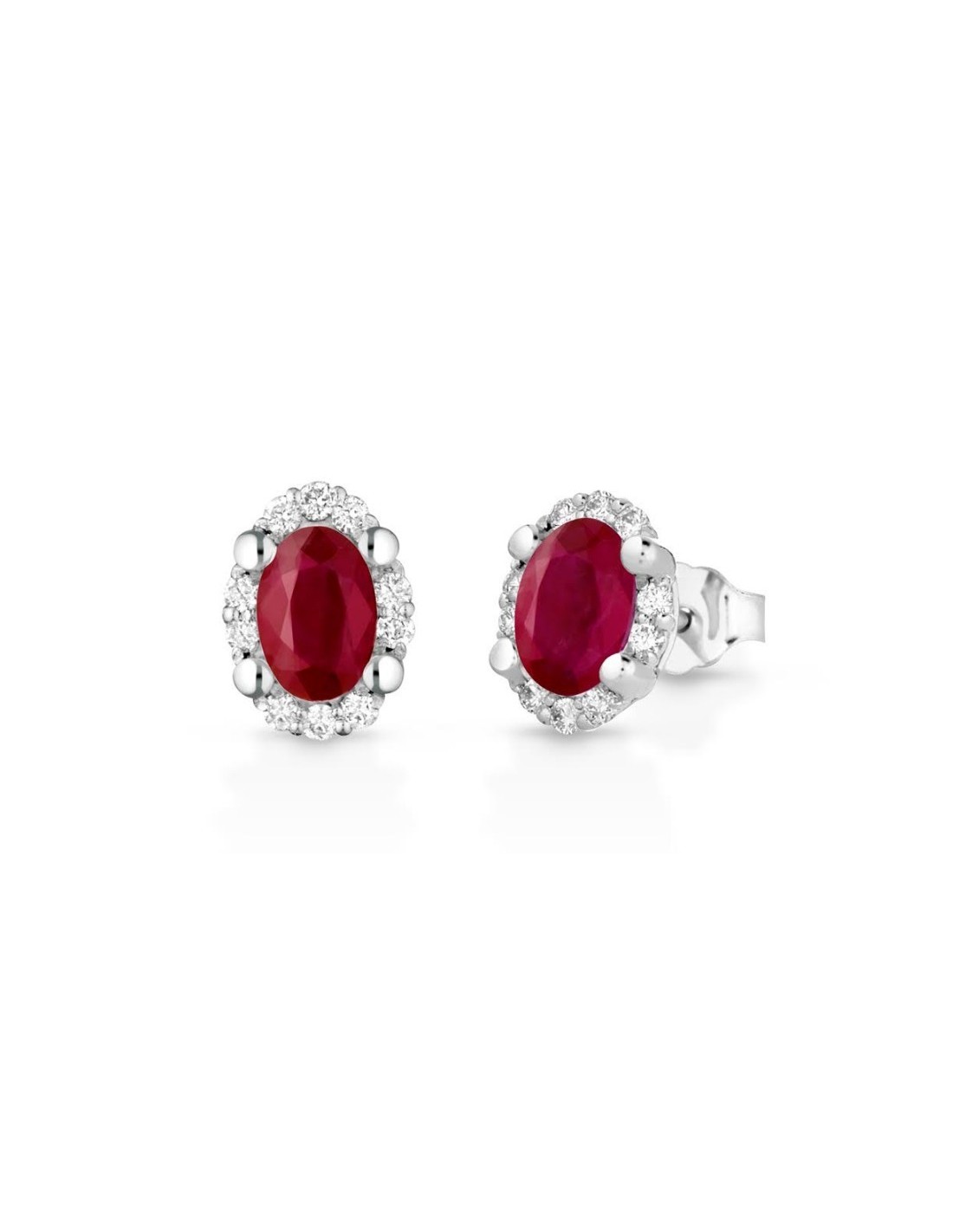 Orecchini in oro bianco 18kt con diamanti e rubini